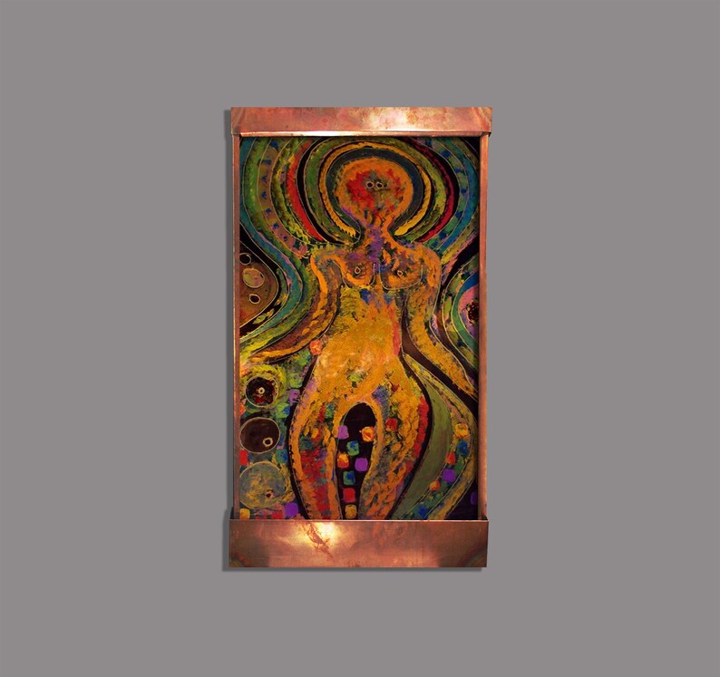 It is said that some people can read the auras of the people around them. This is our abstracted representation of that- the many and myriad ways that we radiate energy in to the world. It is 48″ tall, 28″ wide, 6″ deep and comes with everything you need to hang and run it. An LED light hood can be purchased separately. Ask us about custom sizes and special orders! Highlights: