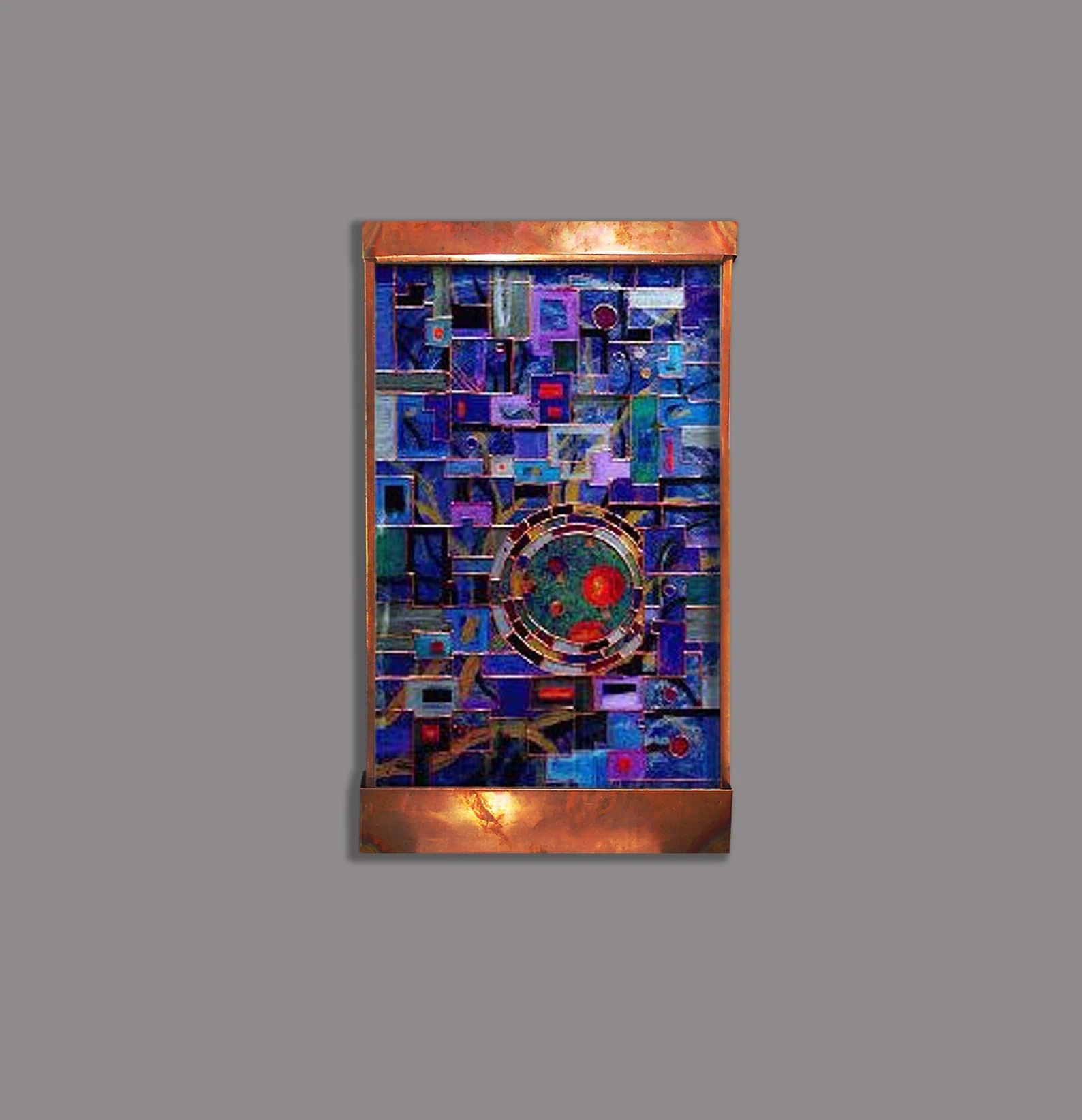 You remember Captain Nemo and his lethal and infamous Nautilus. As a little kid, I thought it was so cool that Nemo could ram the bad guys, until I realized that Nemo was supposed to be the bad guy. I was pretty young at the time...and the Nautilus was what left the biggest impression. Later, I attempted making my own one-man submarine and then my own underwater diving bell, and then later still I created some bronze abstract sculptural submarines. Strangely, this sculpture seemed to paint itself. I had little idea what it was supposed to be...until the end. What's difficult to see in this smallish image is that when you look past the abstract, there's a complete underwater scene behind it. And I finally understood that what the sculpture was, Captain Nemo's stained glass window in the Nautilus. Hope you like it! Highlights: