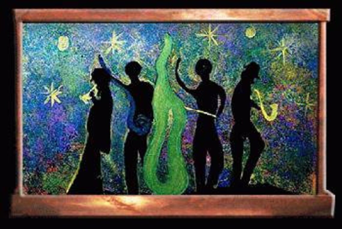 32" tall, 48" wide, 6" deep The moment I finished this one, my wife wandered by and discovered...well...all kinds of symbolism in it. I told her to go away and leave me alone. We're into music, but we're also into other things that...go bump in the night. If you want to see naughty symbolism in this sculpture, go ahead. But I swear it wasn't intended. ...I don't think it was intended. Oh well. If you have a significant other who's a musician, or really likes music, particularly blues or jazz, this is a really neat addition...a blues fountain. Highlights: